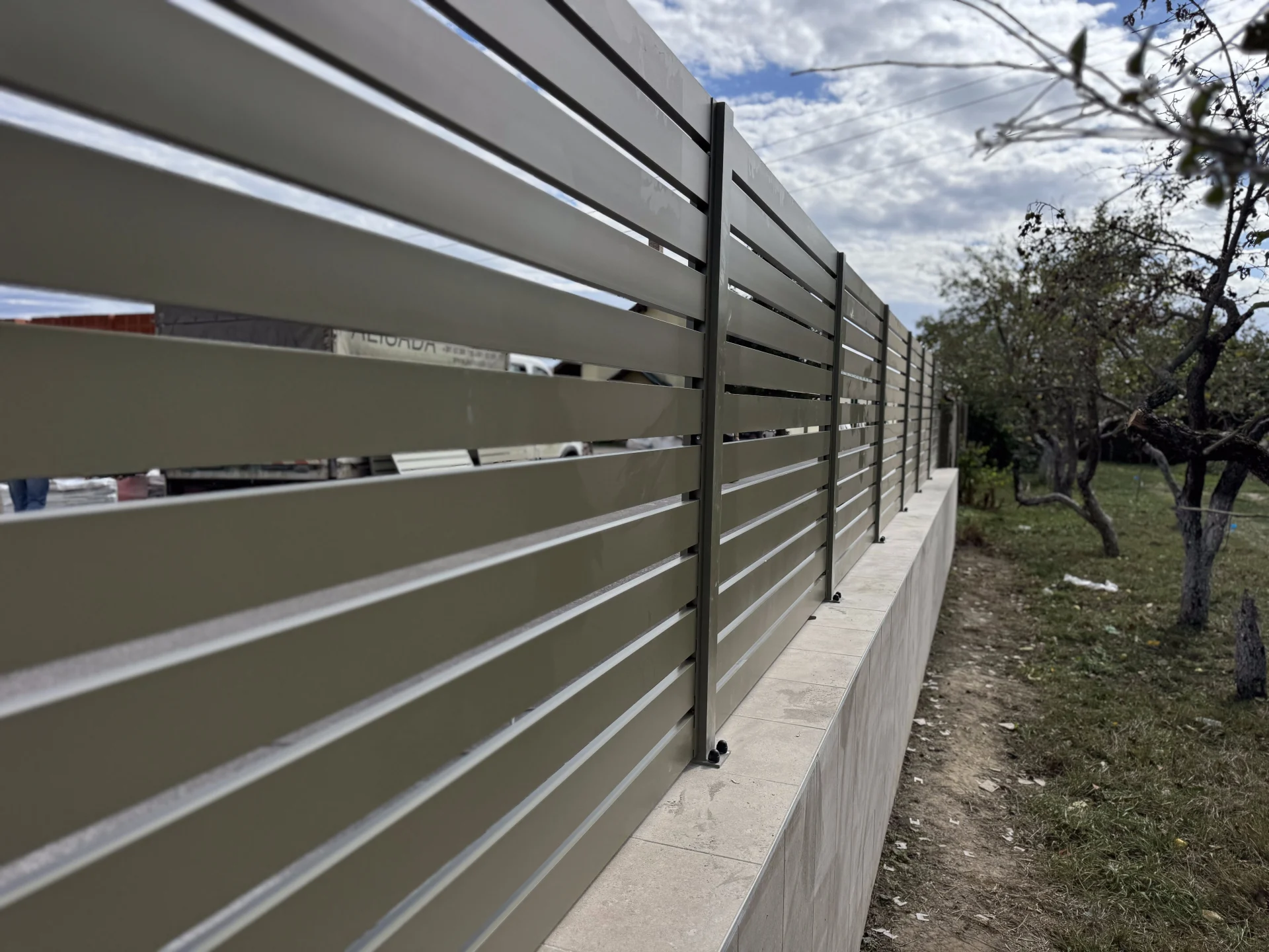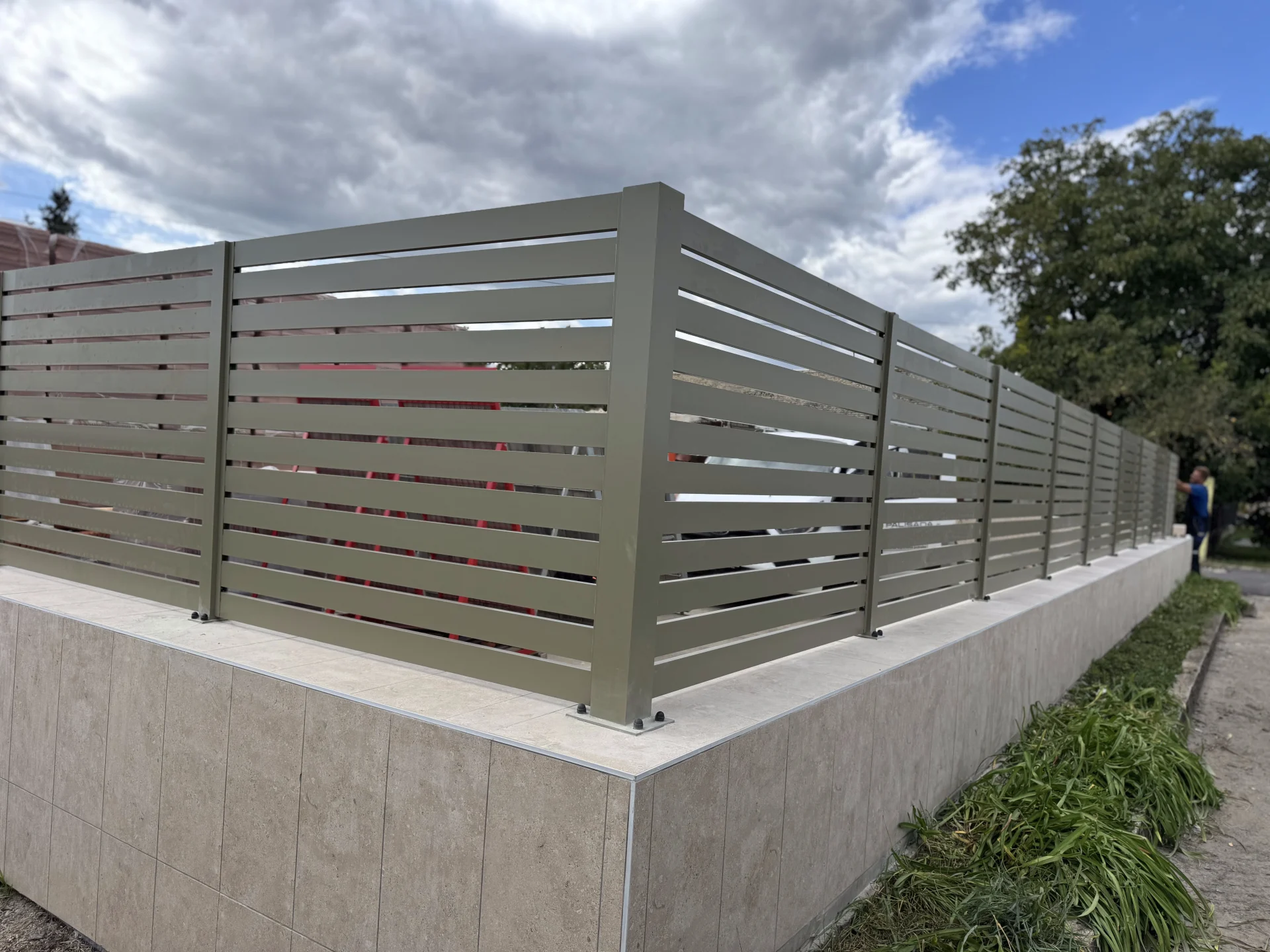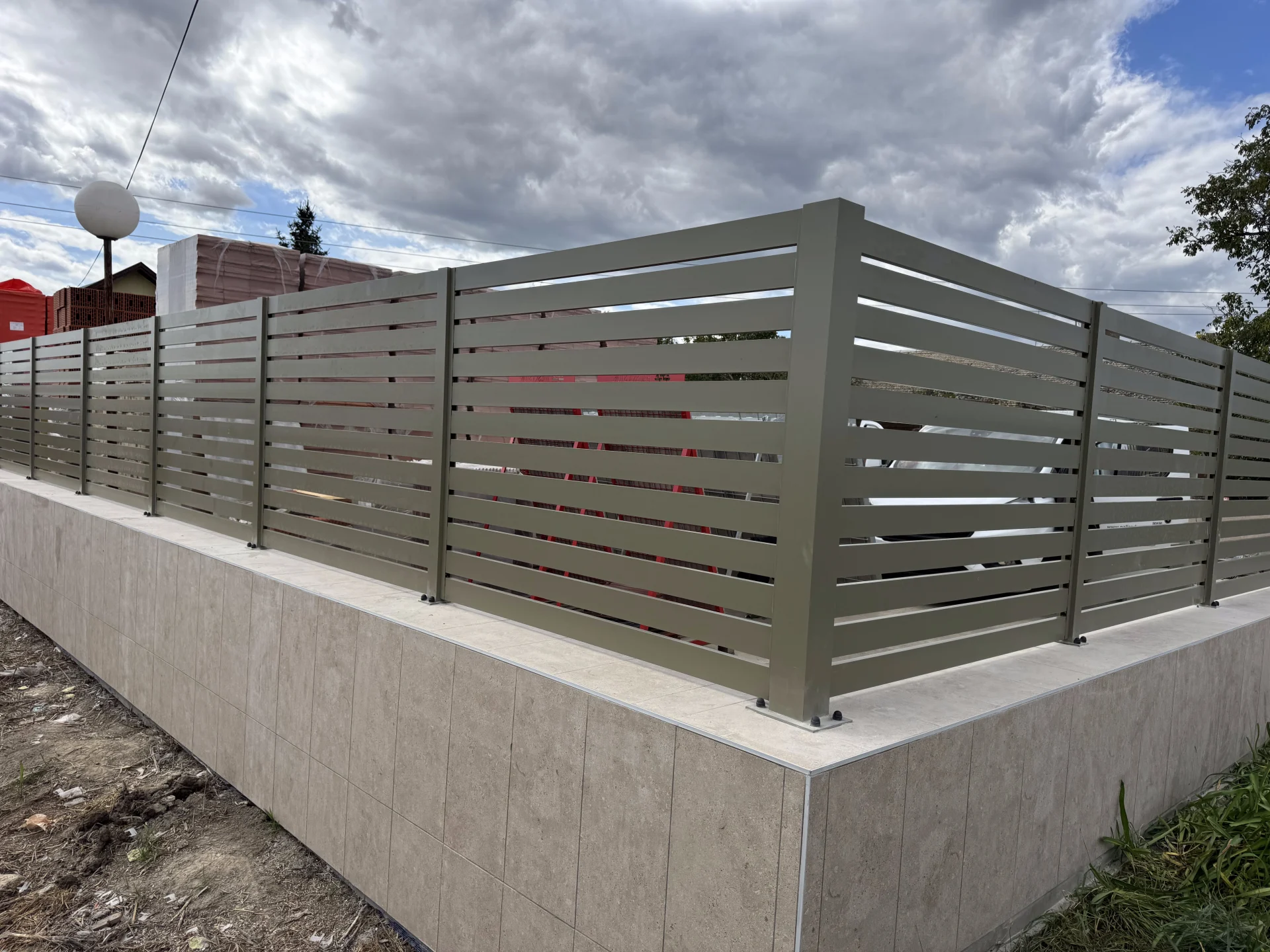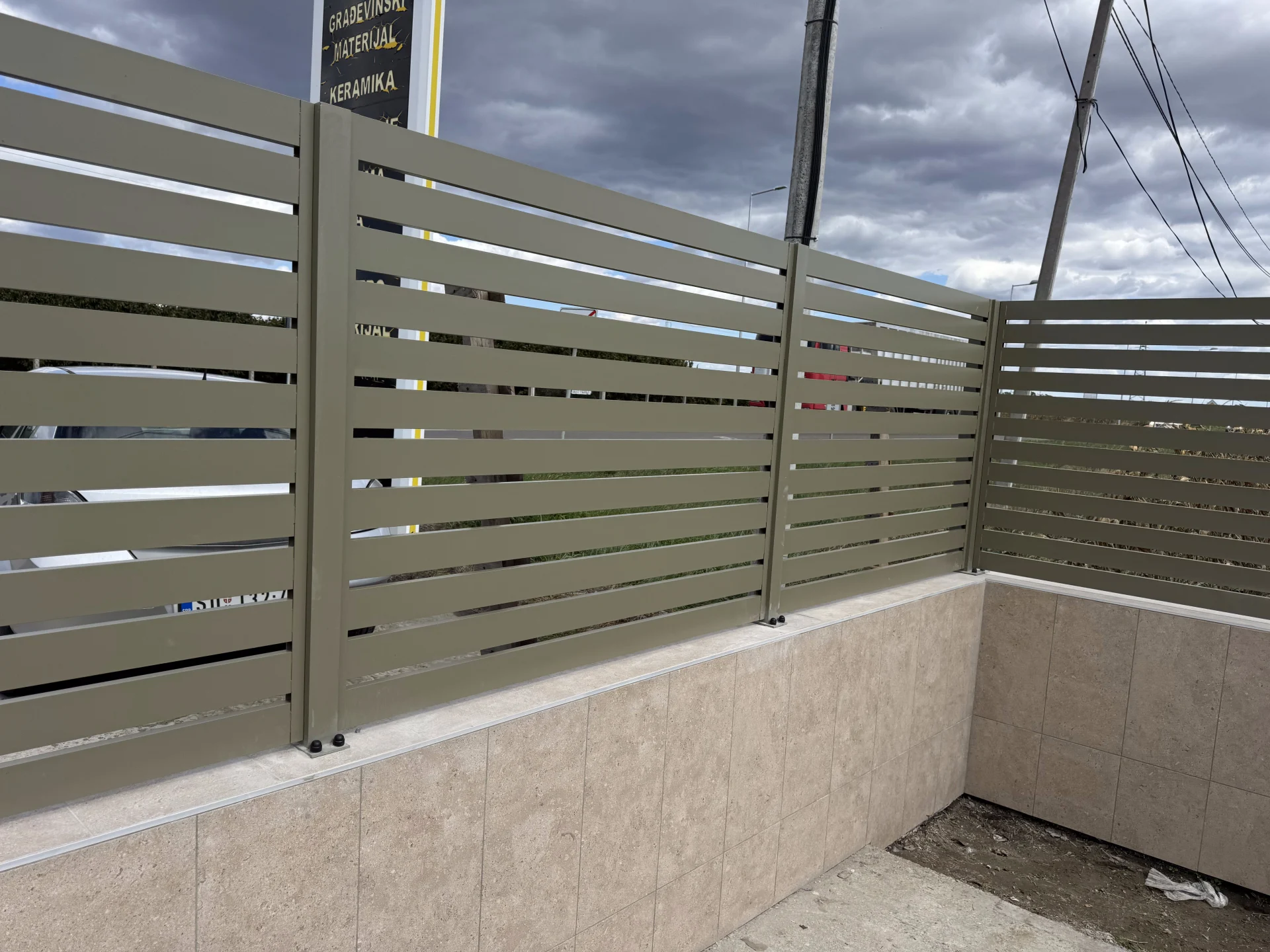 Izrada: Paneli BELVEDERE izrađeni su od aluminijumskih profila dimenzija 80×20 mm, sa pažljivo odmerenim rastojanjem između lamela, što ogradi daje polutransparentan izgled i savremeni karakter.
