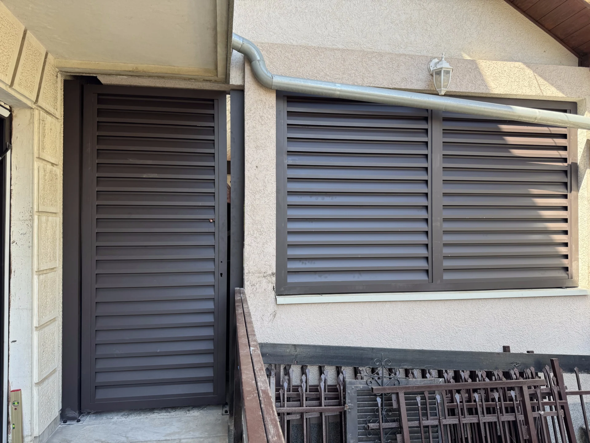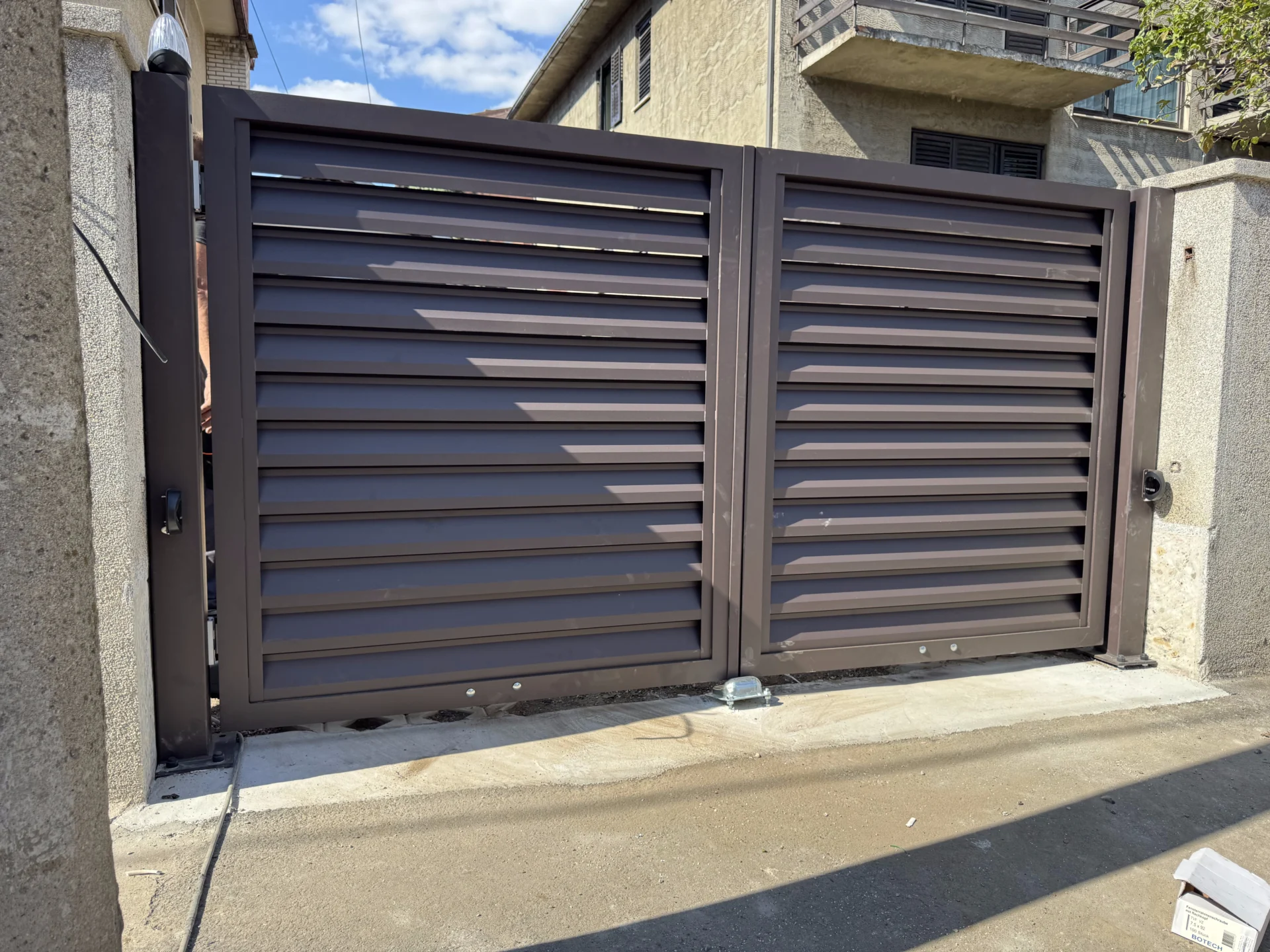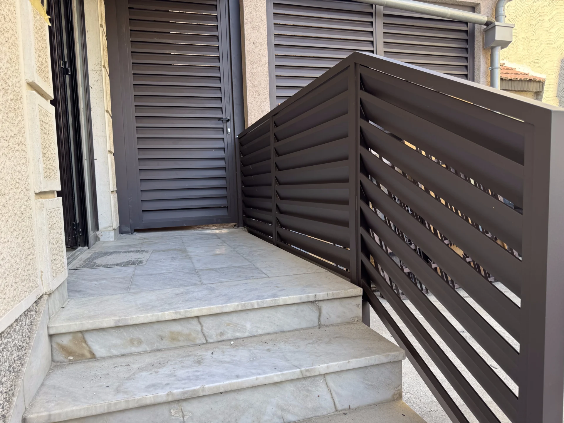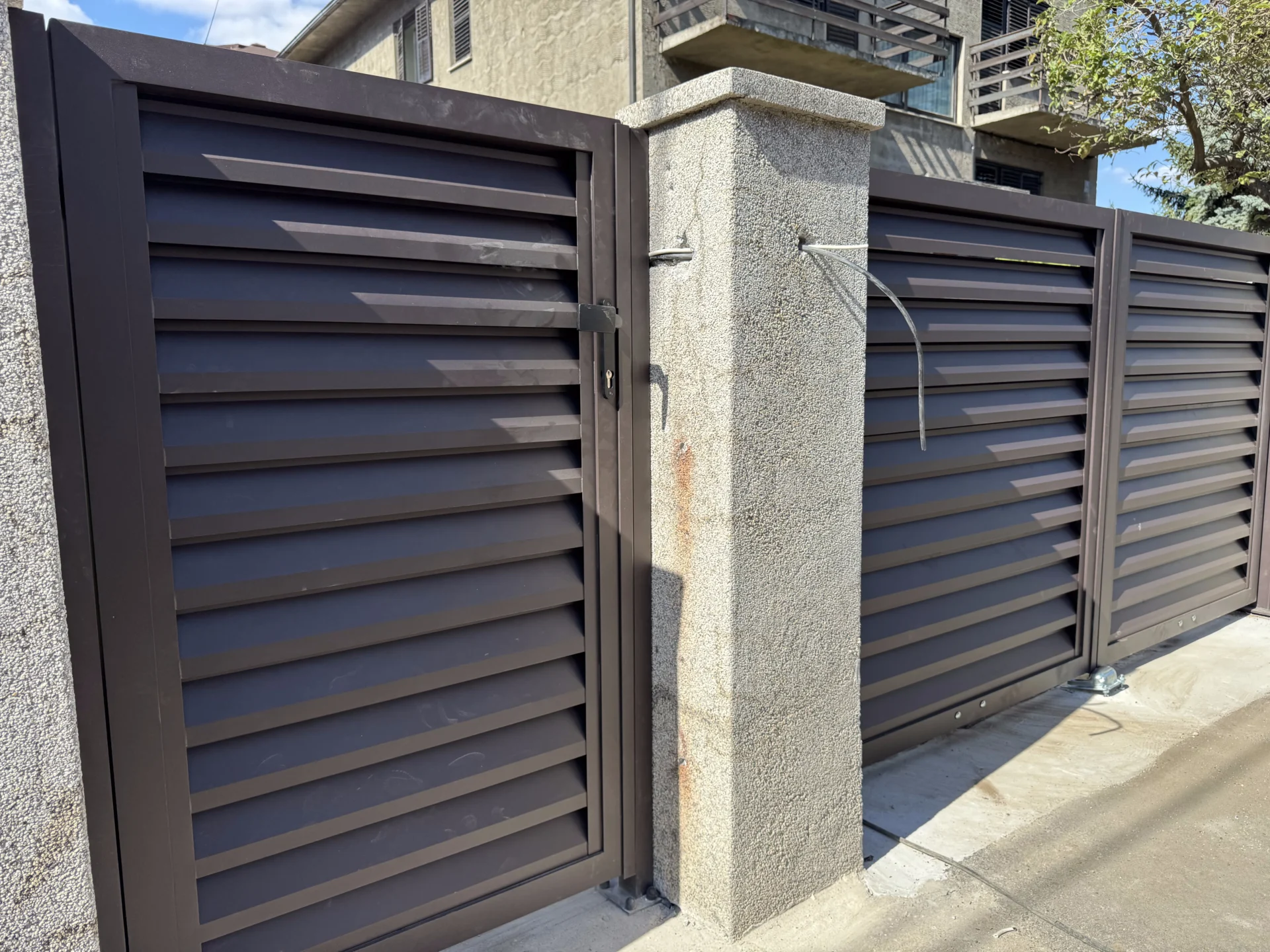 Instalirana je i pešačka aluminijumska kapija TIVOLI, izrađena u istom stilu i boji, sa okovom LOCINOX koji obezbeđuje dug vek trajanja i besprekornu funkcionalnost.