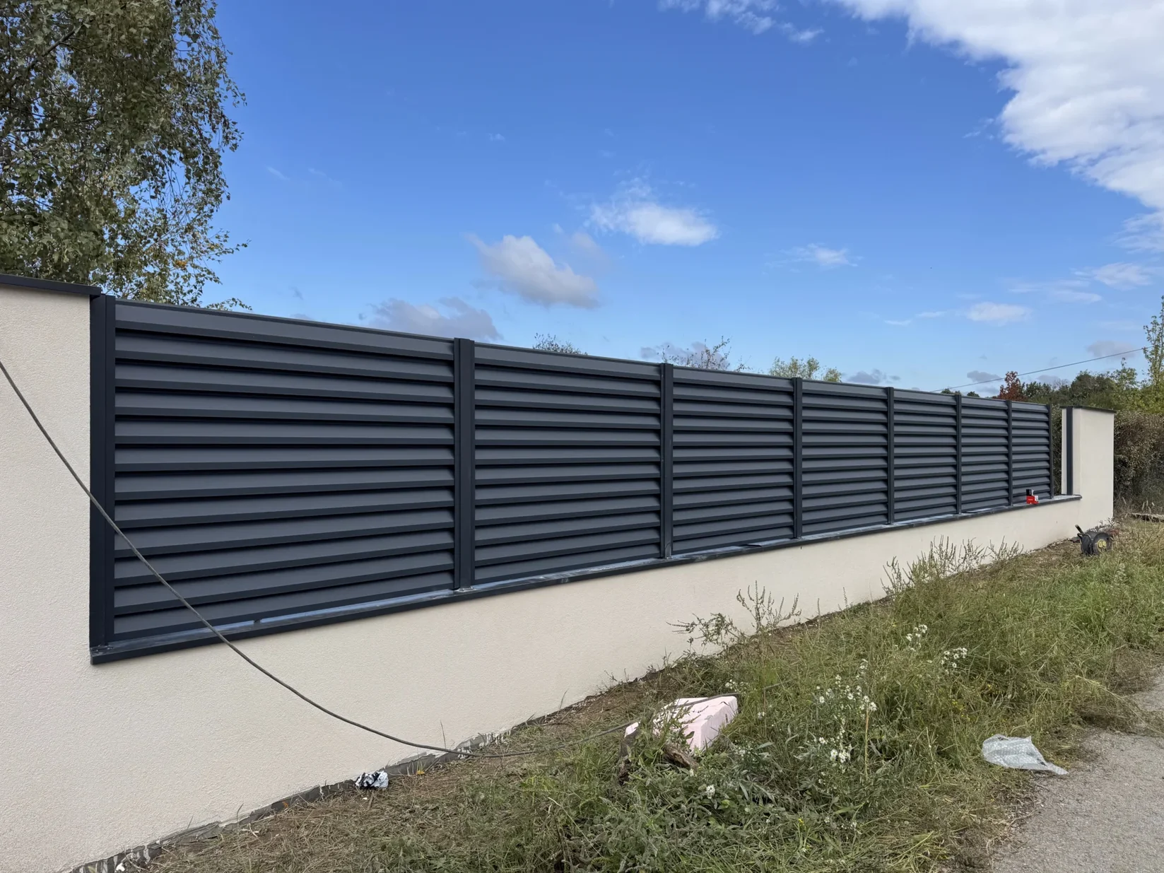 Dizajn i materijal: Ograda je izrađena od aluminijumskih Z profila, koji obezbeđuju savremeni izgled i visok stepen privatnosti, zahvaljujući neprovidnoj strukturi.
