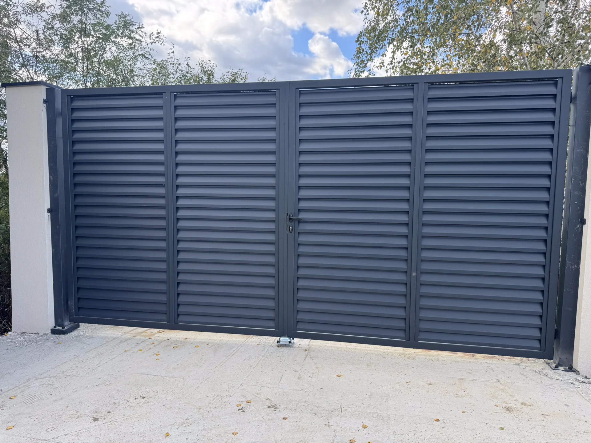 Dvokrilna kapija TIVOLI: Instalirana kao pomoćno rešenje, izrađena u istom stilu i boji, sa šarkama i okovom LOCINOX, što garantuje pouzdanost i dug vek trajanja.