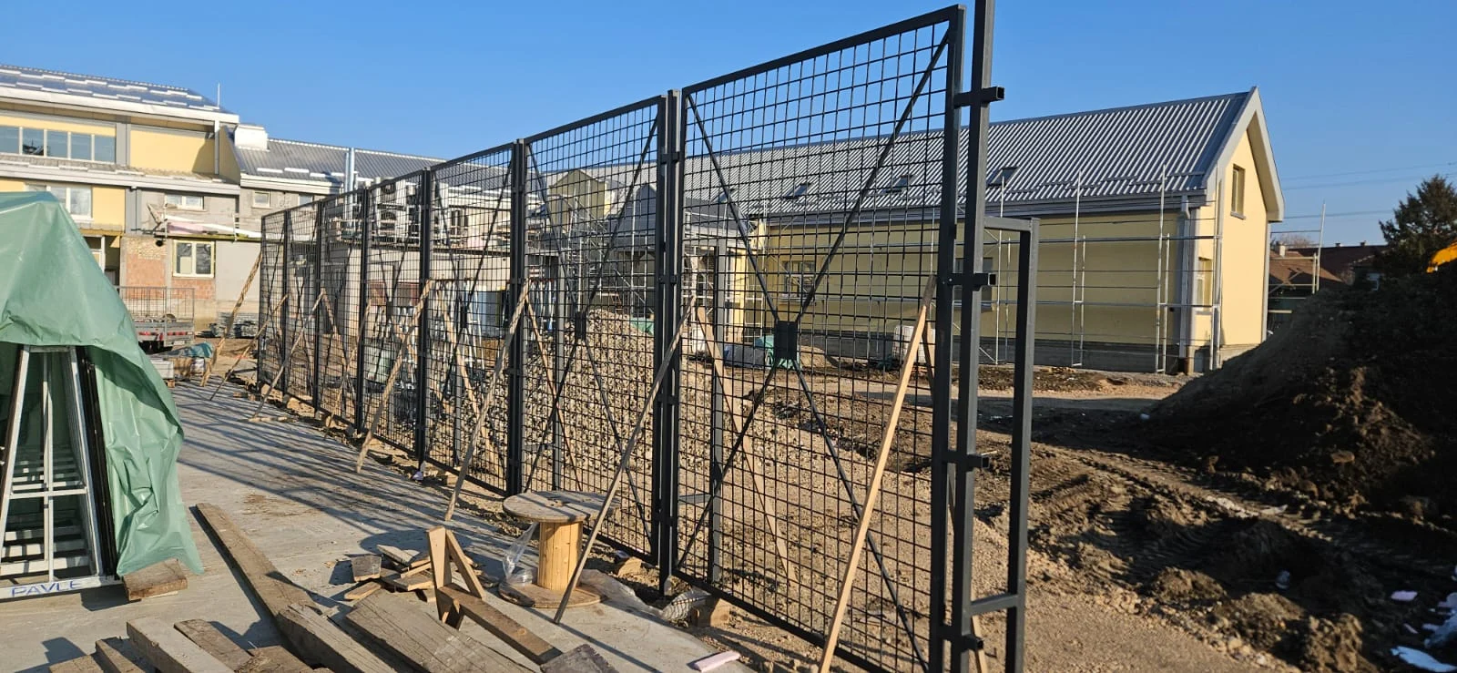 Specifikacija: Na objektu je postavljena panelna ograda tipa DOUBLEFENCE 2D, izrađena od žice debljine 6/5/6 mm i visine 2,03 m. Ovaj model odlikuje se visokom čvrstoćom i izuzetnom otpornošću na mehanička opterećenja, što ga čini idealnim za bezbednosne sisteme na obrazovnim ustanovama