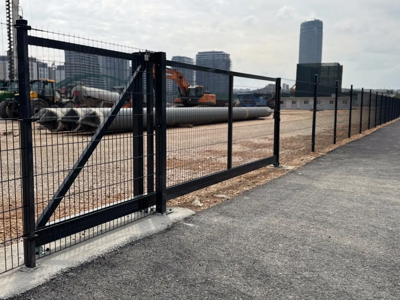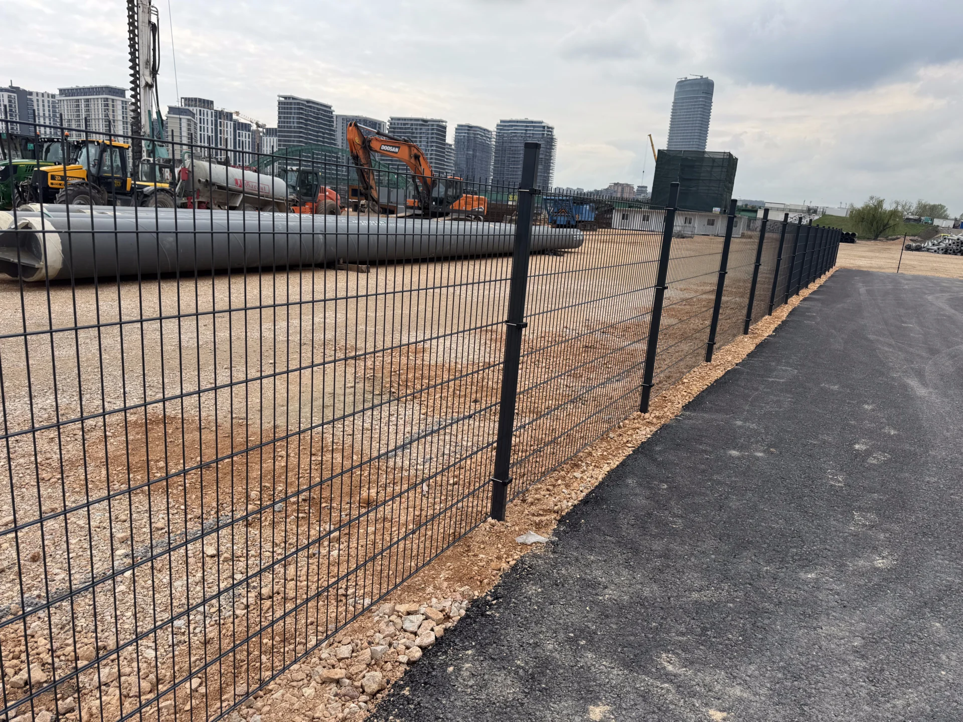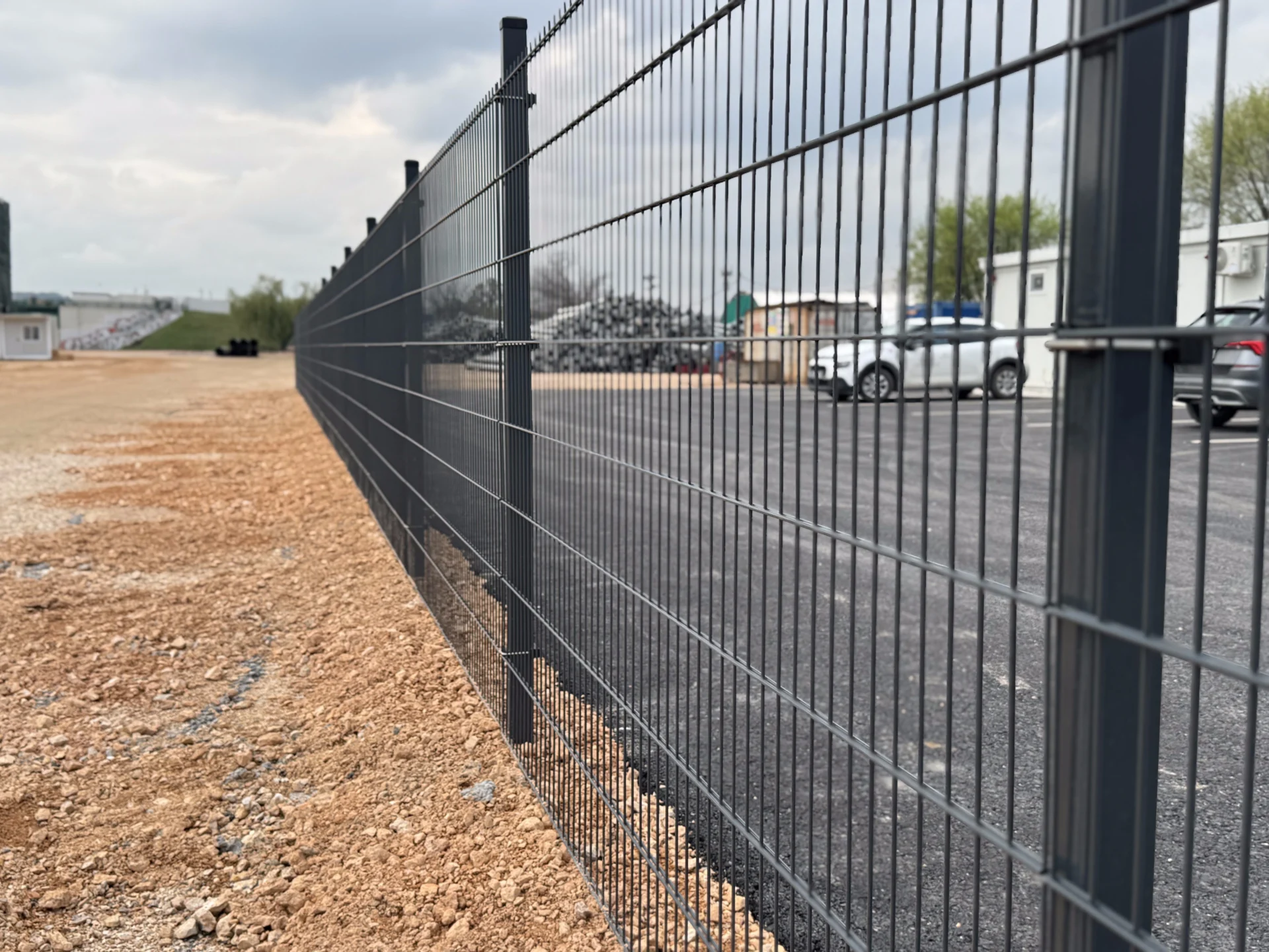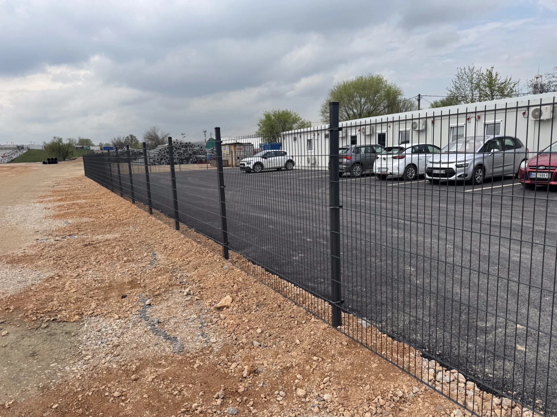 Na objektu je postavljena DOUBLEFENCE 2D panelna ograda u boji RAL 7016 – antracit siva, koja se odlikuje visokom čvrstoćom, stabilnošću i dugim vekom trajanja, što je čini idealnim rešenjem za ograđivanje gradilišta i industrijskih zona.
