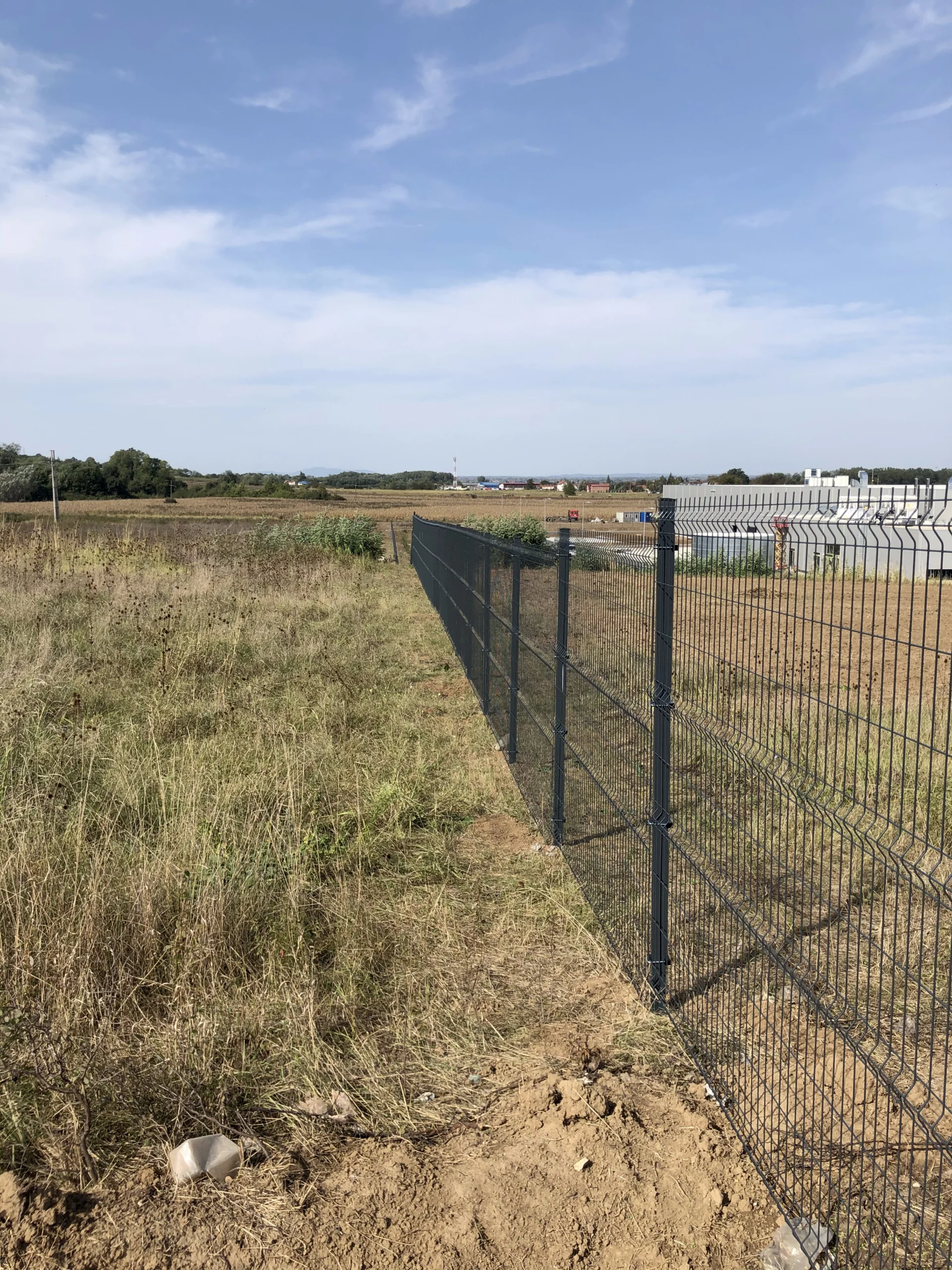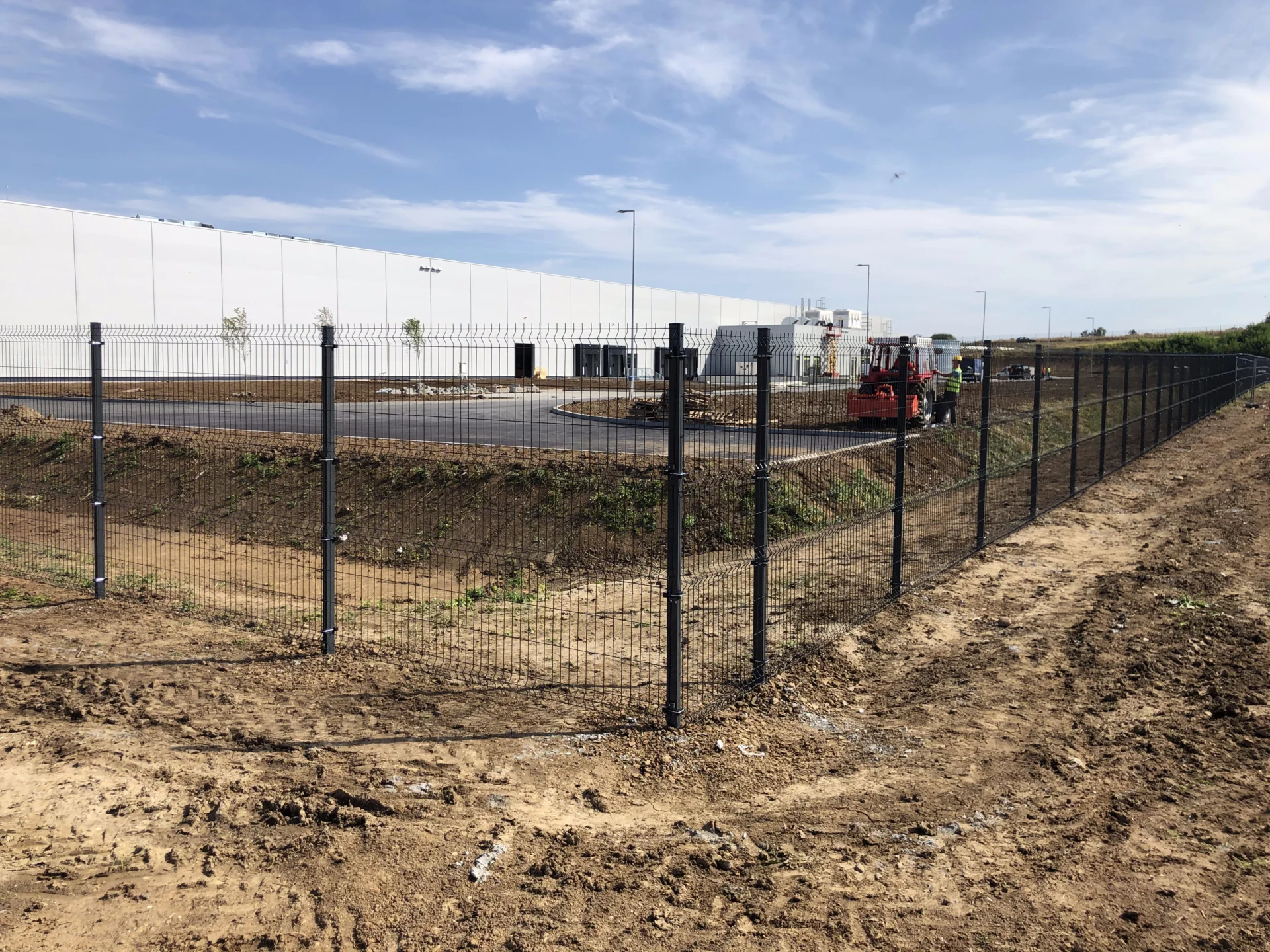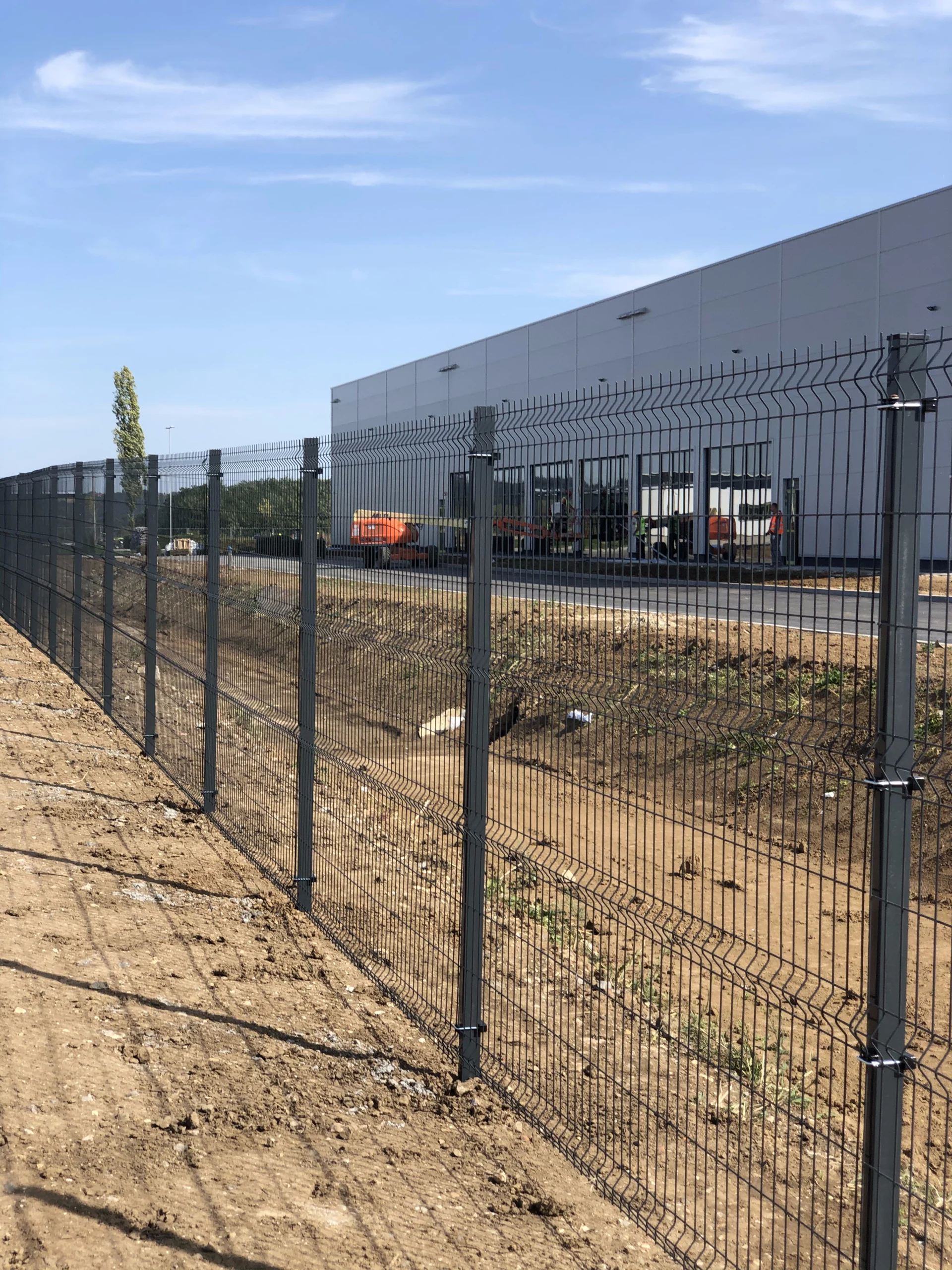 Postavljena je EUROFENCE 3D panelna ograda u boji RAL 7016 – antracit siva, koja se odlikuje visokom čvrstoćom, dugim vekom trajanja i modernim industrijskim izgledom. Ograda je montirana na usadne stubove, dok su paneli pričvršćeni pomoću INOX spojnica, čime je obezbeđena maksimalna stabilnost konstrukcije i otpornost na spoljne uticaje.