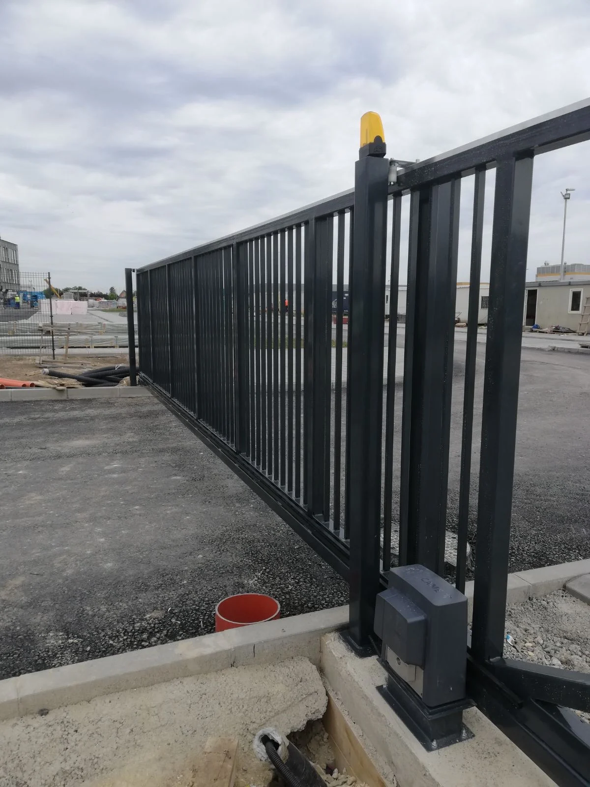 Uz panelnu ogradu ugrađene su kapije iz linije STANDARD, izrađene od čeličnih profila, toplocinkovane i dodatno plastificirane, što obezbeđuje pouzdan rad i dugotrajnu zaštitu od korozije.