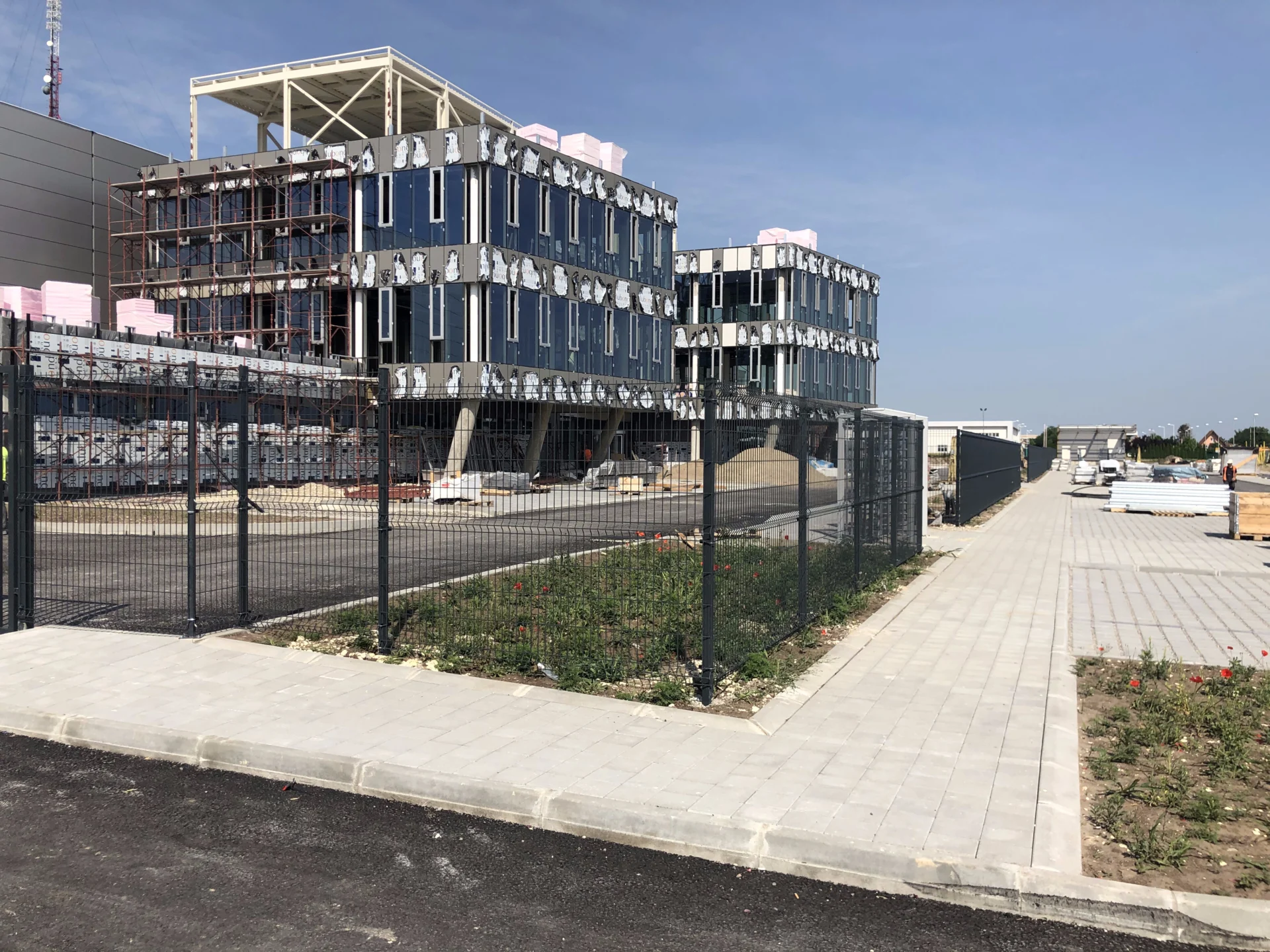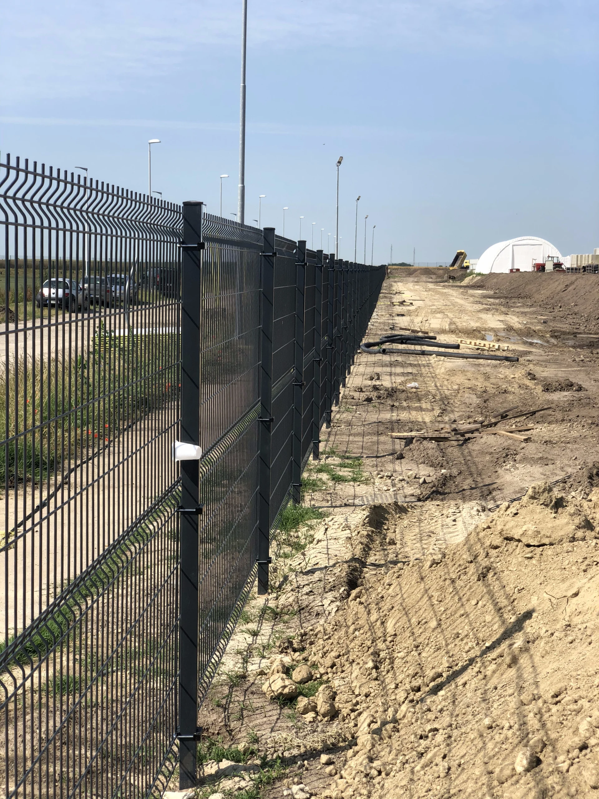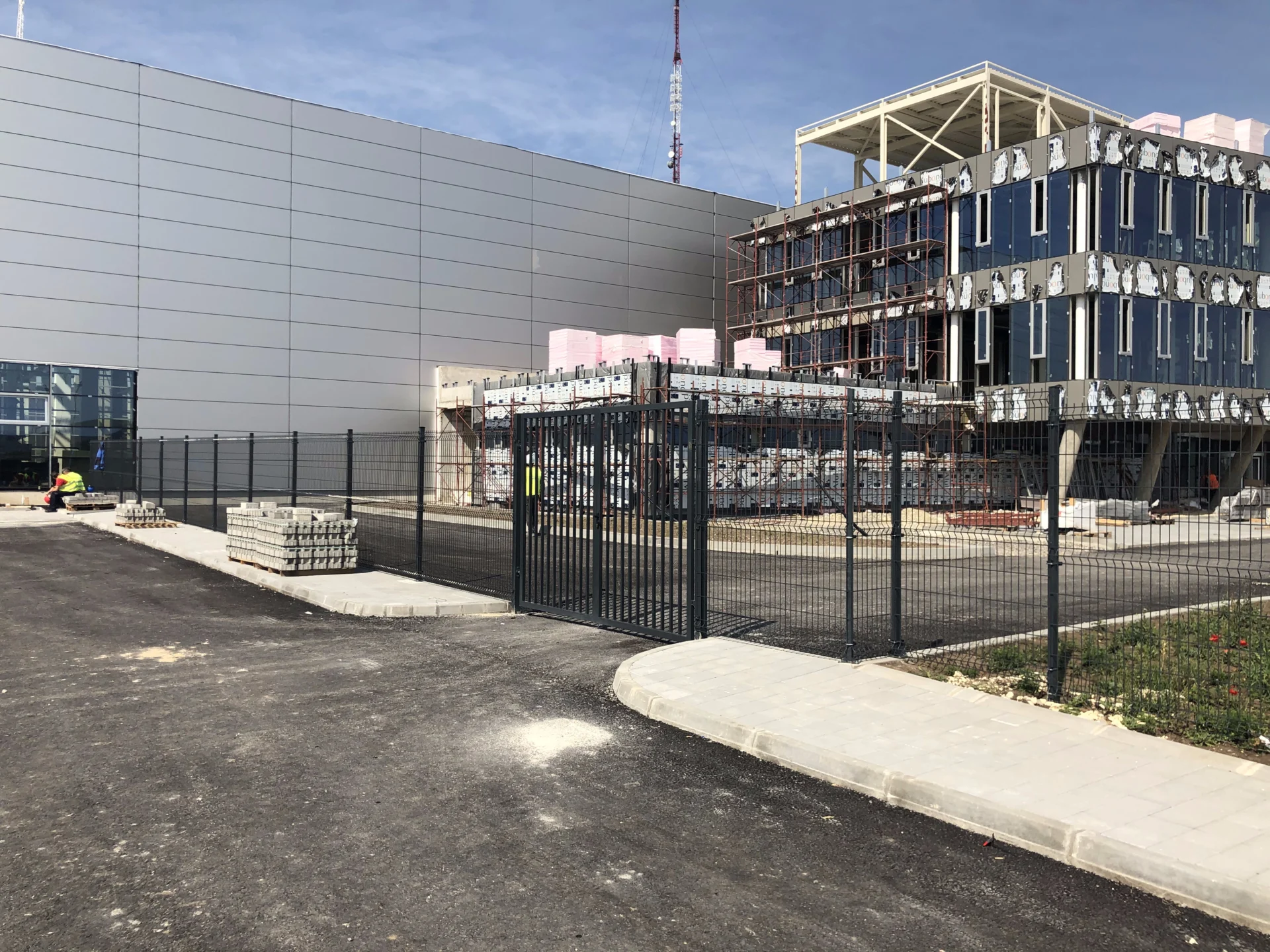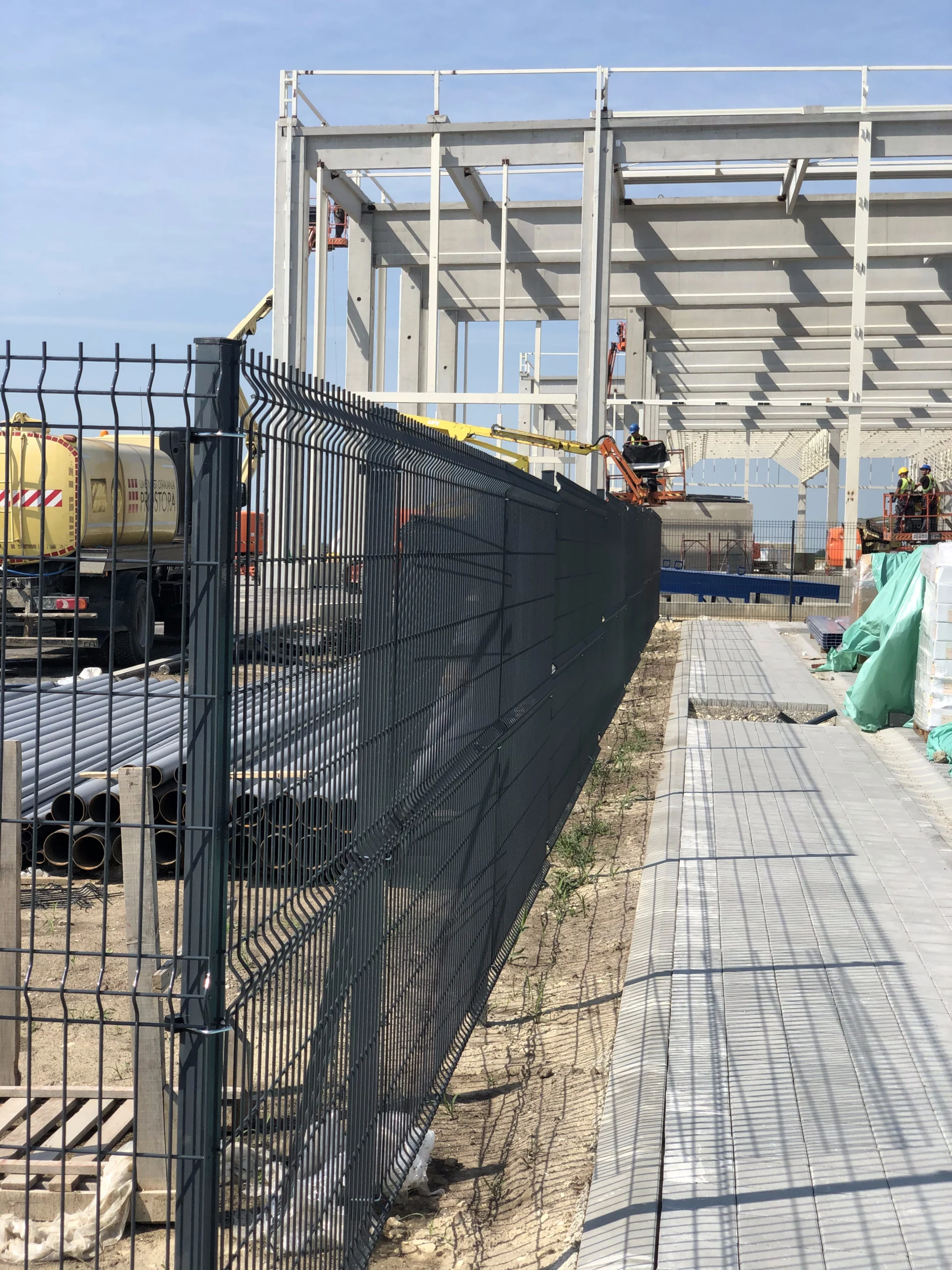 Za ograđivanje objekta postavljena je EUROFENCE 3D panelna ograda debljine žice 5 mm, u boji RAL 7016 – antracit siva, koja se odlikuje izuzetnom čvrstoćom, dugotrajnošću i otpornošću na spoljne uticaje.