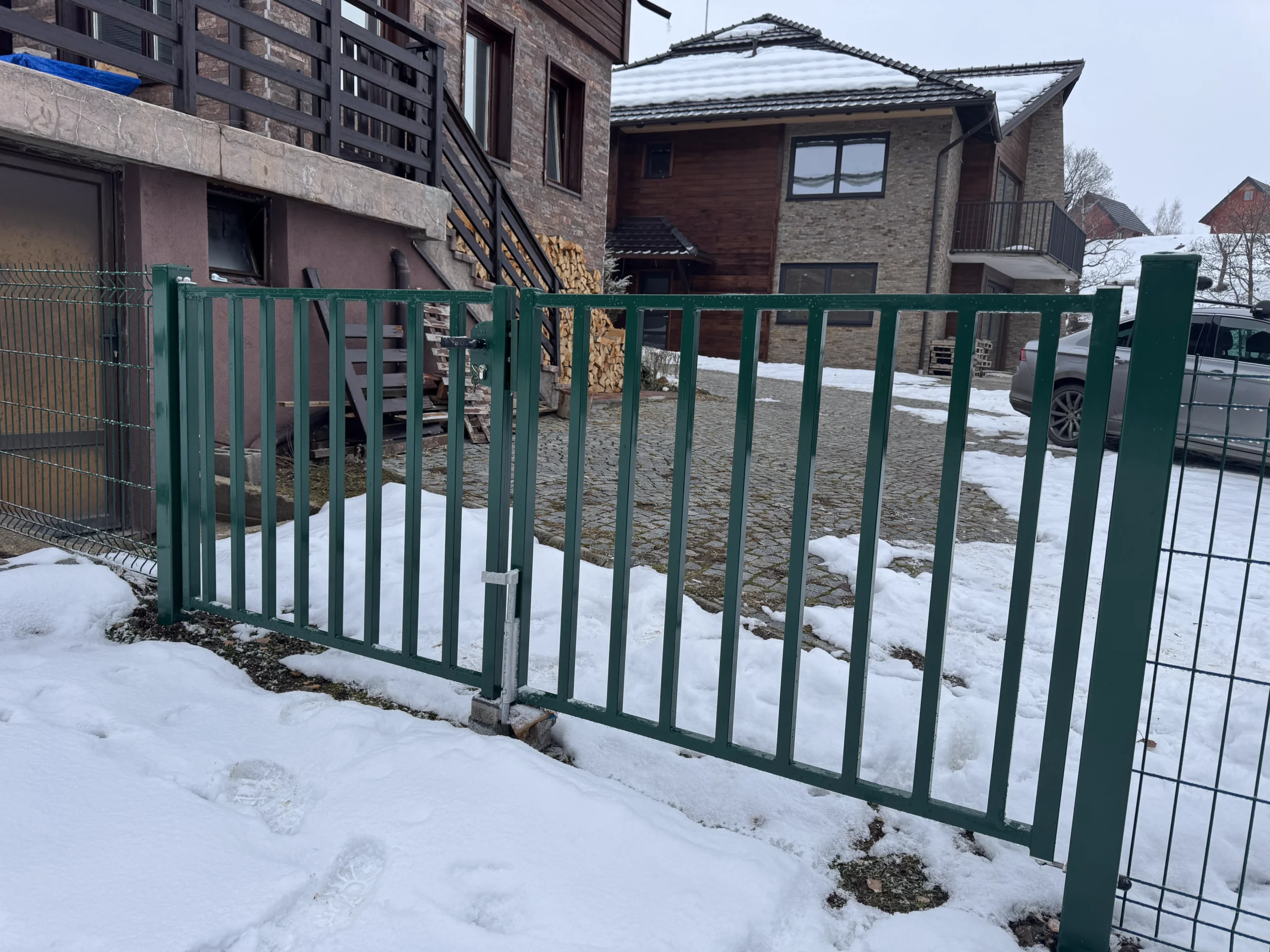 Izrada: Dvokrilna kapija STANDARD izrađena je od čeličnih cinkovanih profila, sa potpornom konstrukcijom projektovanom za pouzdano svakodnevno korišćenje. Kompletna kapija plastificirana je u istoj boji kao panelna ograda, čime je postignut vizuelni kontinuitet i estetski sklad.