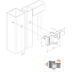 LOCINOX Puma šarka je sastavni deo seta, sa uglom otvaranja od 180° zajedno sa vertikalnom i horizontalnom prilagodljivošću čine šarku fleksibilnom.
