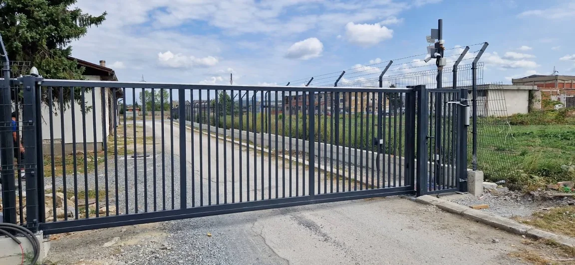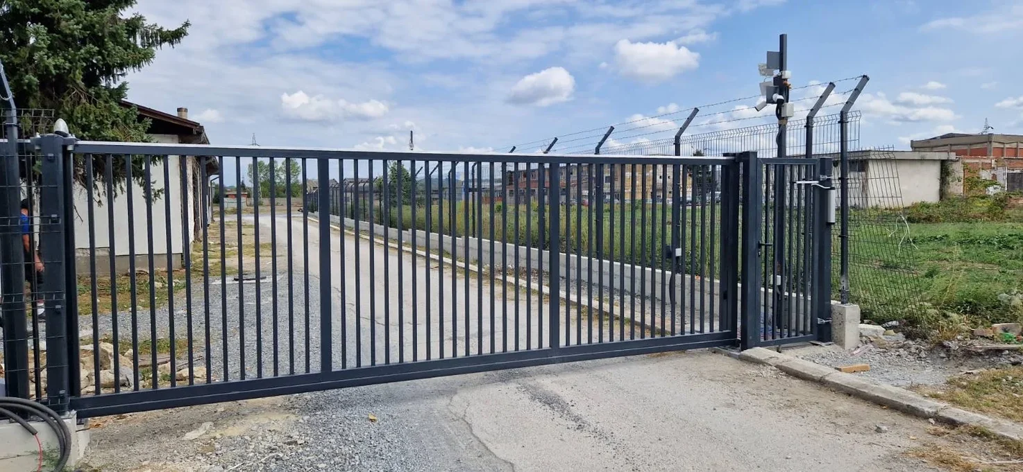 Na ovom objektu postavljena je moderna i funkcionalna samonosiva kapija STANDARD, plastificirana u boji RAL7016 antracit siva. Samonosive kapije su izuzetno praktično rešenje za prolaze velikih širina i terene sa blagim nagibom, jer ne zahtevaju donju šinu, što ih čini idealnim za objekte sa čestim prolaskom teretnih vozila.