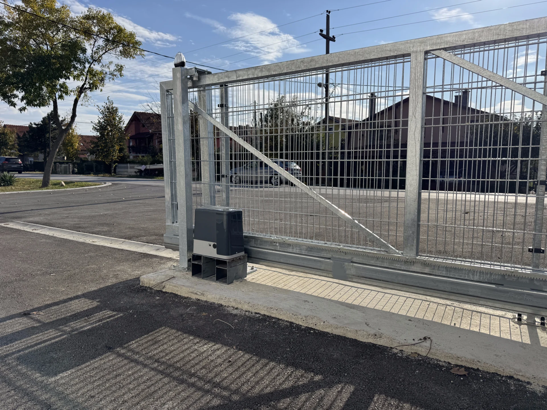 Konstrukcija: Kapija dužine 18 metara izrađena je od toplocinkovanih čeličnih profila i 2D panela, čime je postignuta visoka mehanička otpornost i savršeno uklapanje sa ogradom.